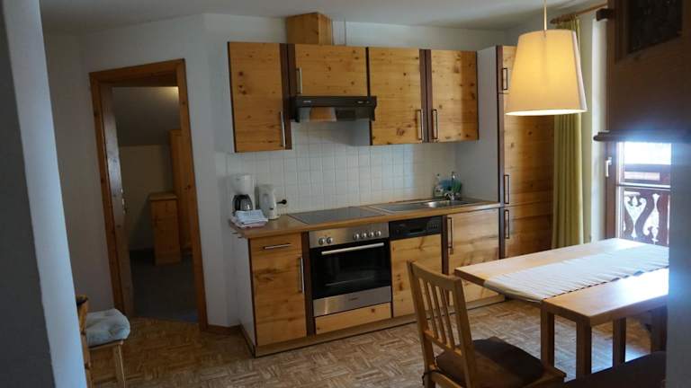 Die Appartements sind mit einer voll ausgestatteten Küche versehen, die einen Kühlschrank, Geschirrspüler, Ofen, Herdplatte, Kaffeemaschine und Wasserkocher umfasst. Weitere Verpflegungsmöglichkeiten sind in der direkten Nähe vorhanden.