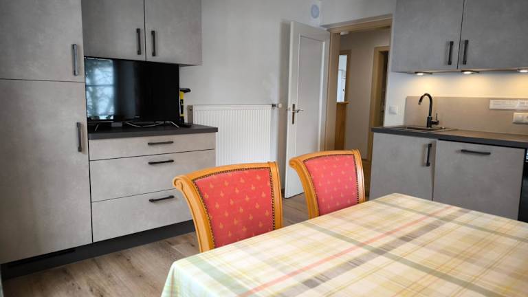 Die Appartements sind mit einer voll ausgestatteten Küche ausgestattet, die unter anderem einen Kühlschrank, eine Kaffeemaschine, einen Geschirrspüler, einen Ofen, eine Herdplatte sowie einen Wasserkocher beinhaltet. Kulinarische Eigenheiten wie Zopf oder Gipfeli können in der Gemeinschaftsküche zubereitet werden.