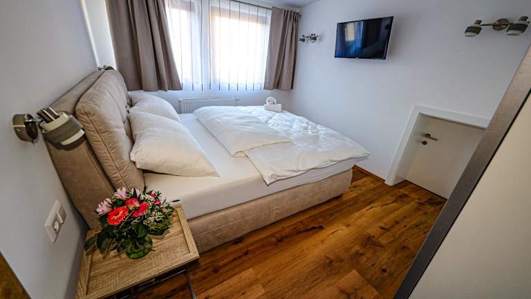 Die Apartments im Appartementhaus Römerhof Superior sind geräumig und bieten einen komfortablen Aufenthalt. Jedes Apartment verfügt über eine Terrasse mit Gartenblick, auf der Sie entspannen können. Die Apartments sind modern eingerichtet und verfügen über einen gemütlichen Sitzbereich sowie einen Flachbild-TV. Die voll ausgestattete Küche bietet alle Annehmlichkeiten, die Sie für die Zubereitung Ihrer eigenen Mahlzeiten benötigen, einschließlich eines Kühlschranks, eines Geschirrspülers, eines Backofens, eines Kochfelds, einer Kaffeemaschine und eines Wasserkochers. Das eigene Bad ist mit einem Bidet und einem Haartrockner ausgestattet. Kostenloses WLAN steht Ihnen in allen Bereichen des Hotels zur Verfügung.