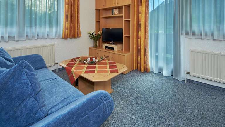 Die Ferienwohnung bietet einen Balkon mit Bergblick sowie ein Schlafzimmer und ein Wohnzimmer. Zu den Annehmlichkeiten gehören ein Flachbild-TV, eine gut ausgestattete Küchenzeile mit Kühlschrank und Mikrowelle sowie ein Badezimmer mit Badewanne.