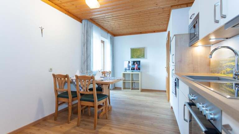 Die Appartements sind mit einem Balkon und Bergblick ausgestattet. Sie verfügen über einen Sitzbereich, einen Kabel Flachbild-TV sowie eine voll ausgestattete Küche mit Kühlschrank, Geschirrspüler, Ofen, Mikrowelle, Herdplatte, Kaffeemaschine und Wasserkocher. Zudem gibt es ein eigenes Badezimmer mit Badewanne oder Dusche.