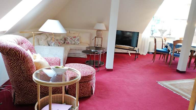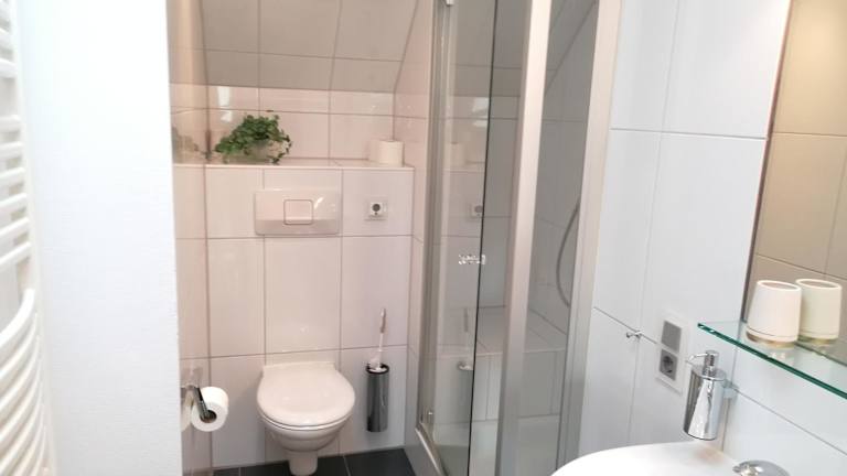 Die Ferienwohnung besteht aus 1 Schlafzimmer, einem Wohnzimmer sowie einer voll ausgestatteten Küchenzeile mit Kühlschrank und Kaffeemaschine. Ein Badezimmer mit Badewanne oder Dusche ist ebenfalls vorhanden. Handtücher und Bettwäsche werden zur Verfügung gestellt.