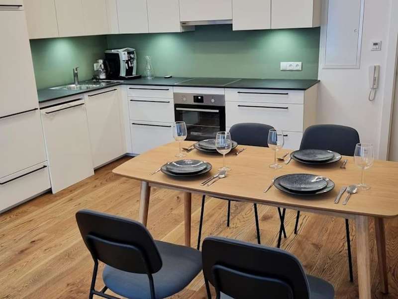 Die Ferienwohnung hat 1 Schlafzimmer, eine Küche mit Kühlschrank und Geschirrspüler, einen Flachbild-TV sowie einen Sitzbereich. Zudem gibt es ein Badezimmer mit Dusche. Handtücher und Bettwäsche werden bereitgestellt.