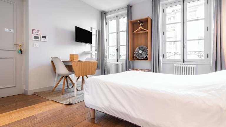 Die Zimmer der Apparts de l'Oncle Louis sind mit einer Klimaanlage und Heizung ausgestattet. Sie verfügen über ein Doppelbett sowie ein Sofabett und bieten bei Bedarf Platz für Zustellbetten. Eine Kochnische mit Kühlschrank, Mikrowelle und Tee-/Kaffeemaschine sorgt für praktische Bequemlichkeiten. Die Badezimmer verfügen über eine Dusche, kostenlose Pflegeprodukte sowie einen Haartrockner. Ein TV-Gerät und ein Schreibtisch sind ebenfalls Teil der Ausstattung.