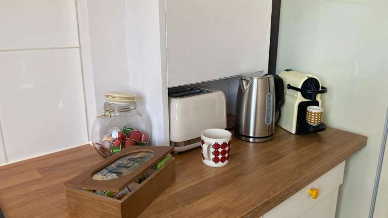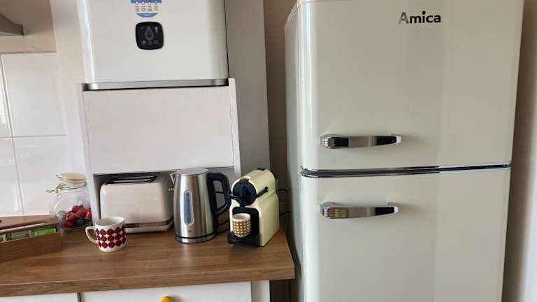 Die Ferienwohnung umfasst 1 Schlafzimmer, ein Wohnzimmer und eine voll ausgestattete Küche mit Kühlschrank und Kaffeemaschine. Zudem stehen den Gästen ein Badezimmer mit Dusche und kostenlosen Pflegeprodukten, sowie Handtücher und Bettwäsche zur Verfügung.