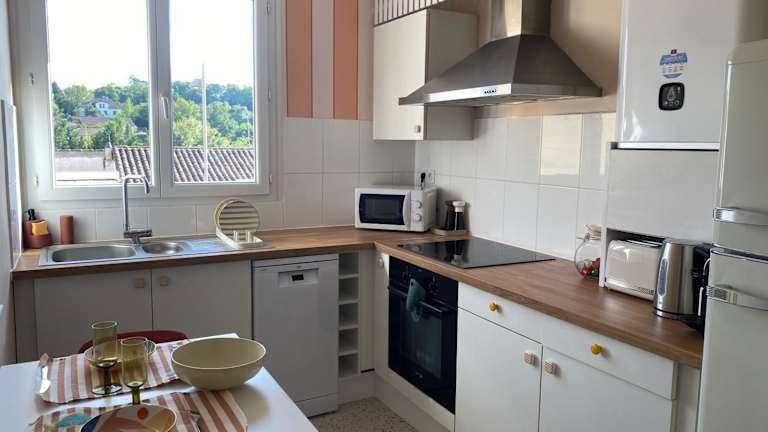 Appt Ô en Couleurs bietet eine gemütliche Unterkunft mit einer Gemeinschaftslounge und wunderschönem Stadtblick. Die Ferienwohnung verfügt über kostenfreies Wifi und eigenständigen Zugang. Die Unterkunft wird von einem privaten Gastgeber geführt und ist Nichtraucher.