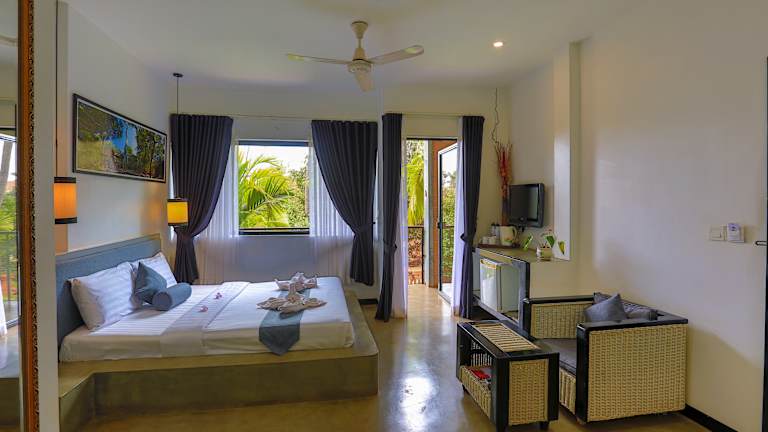 Die Wohneinheiten der Apsara Greenland Boutique Villa & Resort sind mit einem Balkon ausgestattet und verfügen über eine Klimaanlage, einen Flachbild-TV sowie ein eigenes Badezimmer mit einer Dusche und kostenlosen Pflegeprodukten. Zusätzlich sind ein Kühlschrank, eine Minibar und ein Wasserkocher vorhanden.