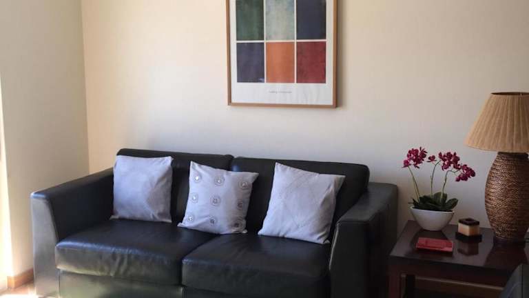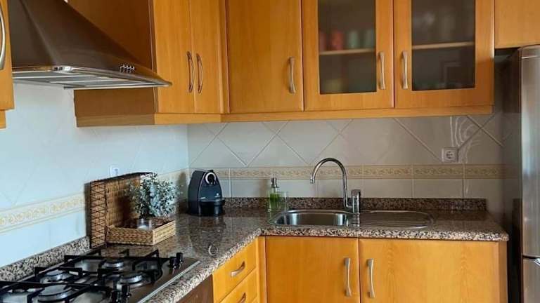 Die Ferienwohnung ist klimatisiert und besteht aus zwei Schlafzimmern, einem Badezimmer mit Bidet und Haartrockner sowie einer voll ausgestatteten Küche mit Kühlschrank und Kaffeemaschine. Handtücher und Bettwäsche werden bereitgestellt.