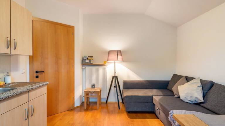 Die Ferienwohnung bietet 1 Schlafzimmer, ein Wohnzimmer mit TV und eine gut ausgestattete Küche, die mit Kühlschrank und Geschirrspüler ausgestattet ist. Ein Badezimmer mit Dusche ist ebenfalls vorhanden. Handtücher und Bettwäsche werden zur Verfügung gestellt.