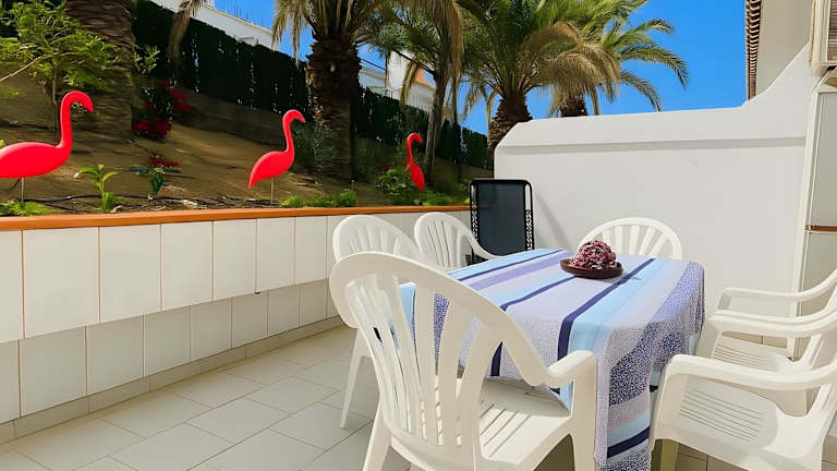 Apto Jardin del Sol Beach bietet eine Ferienwohnung mit zwei Schlafzimmern, einem Badezimmer, Bettwäsche, Handtüchern sowie einem TV mit Kabelkanälen. Die voll ausgestattete Küche und die Terrasse mit Gartenblick sorgen für eine angenehme Bequemlichkeit während des Aufenthalts. Internet ist kostenlos verfügbar und die Unterkunft ist klimatisiert.