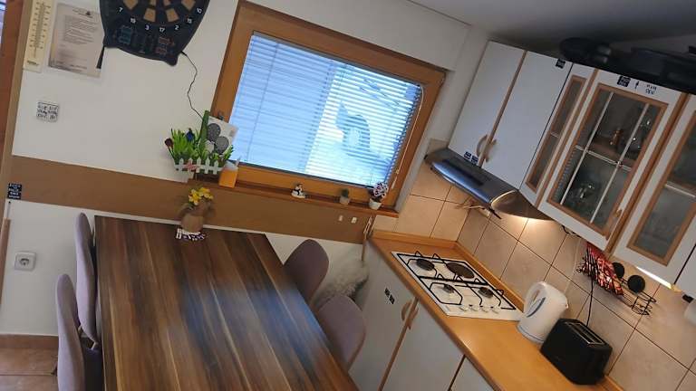 Das Ferienhaus umfasst 2 Schlafzimmer, ein Badezimmer sowie eine voll ausgestattete Küche und einen Essbereich. Zur Ausstattung gehören Bettwäsche, Handtücher und ein Flachbild-TV mit Satellitenkanälen. Die Terrasse bietet einen direkten Zugang zum Garten.