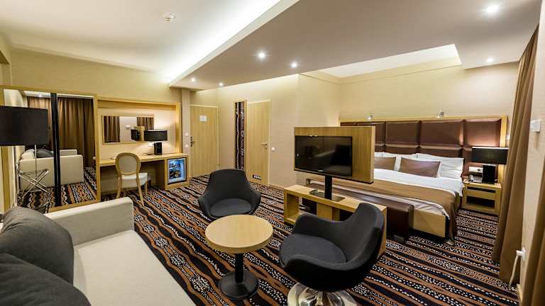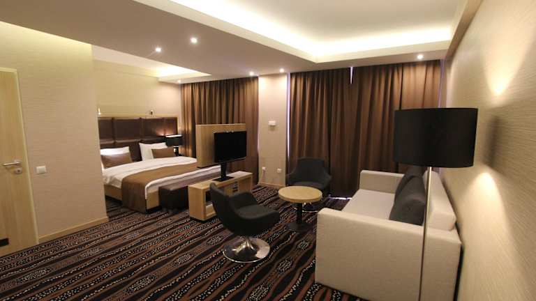 Die Zimmer sind klimatisiert und bieten viele Annehmlichkeiten, darunter einen Balkon, eine Minibar, Telefon, TV-Gerät und kostenfreies Wifi. Jedes Zimmer verfügt über ein Badezimmer mit Dusche und Badewanne sowie Haartrockner und Bademäntel. Das Hotel stellt auch spezielle, rollstuhlgerechte Zimmer zur Verfügung und bietet Nichtraucherzimmer an.