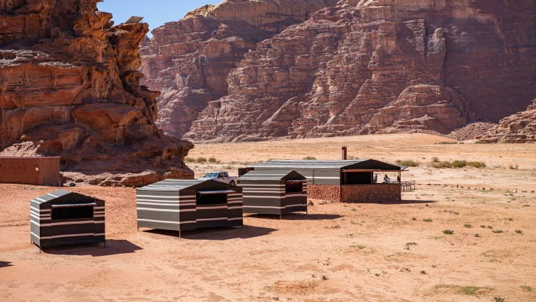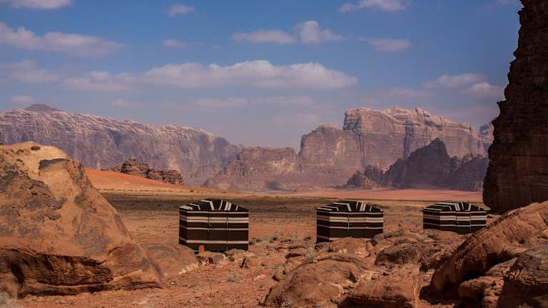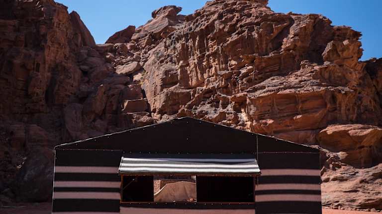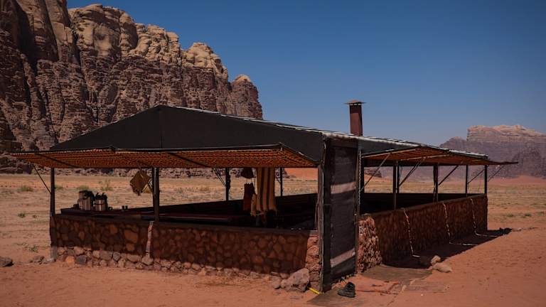 Das Arabian Nights Bedouin Camp befindet sich im malerischen UNESCO-geschützten Naturschutzgebiet Wadi Rum, nur 41 km vom internationalen Flughafen King Hussein entfernt. Die Umgebung zeichnet sich durch beeindruckende Wüstenlandschaften und eine authentische Beduinenkultur aus.
