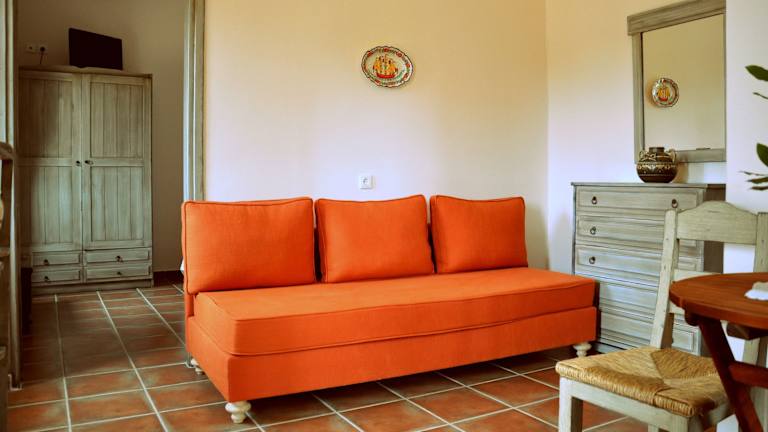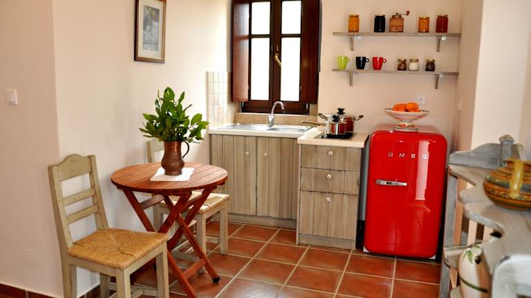 Die Apartments im Landhausstil verfügen über einen grossen Küchen-/Wohnbereich mit Steinwänden und Terrakotta-Fliesenböden. Das Schlafzimmer ist mit einem eleganten Bett, einem Schreibtisch sowie einem Balkon oder einer Terrasse ausgestattet, die einen Blick auf die antiken Wehrtürme bieten. Einige Unterkünfte besitzen zudem einen eigenen Kamin.