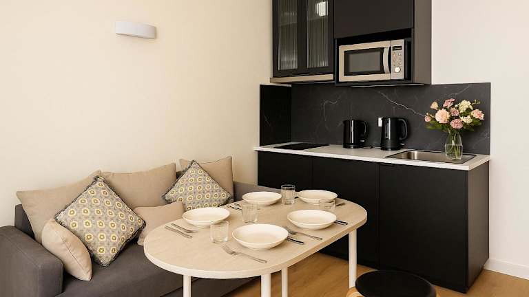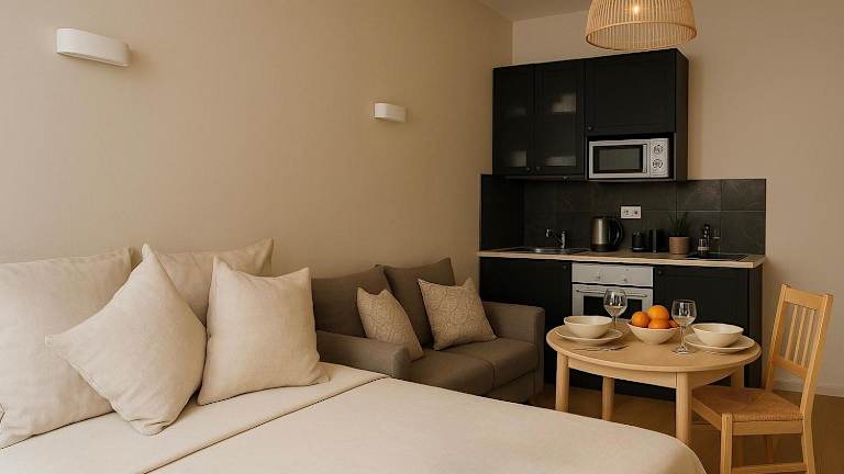 Die Wohneinheiten sind mit einer voll ausgestatteten Küche, einem Esstisch, einem Flachbild-TV mit Satellitenkanälen und einem eigenen Badezimmer mit Dusche ausgestattet. Zu den Küchenelementen zählen Kühlschrank, Ofen, Mikrowelle, Kaffeemaschine und Wasserkocher.