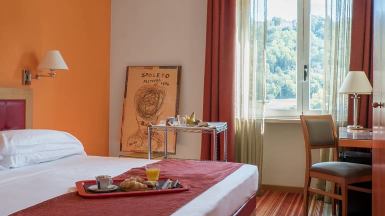 The Originals City, Arca Street Art Hotel in Spoleto, Umbria, is a trendy hotel, an unique example of Street Art in the world of hospitality. Exteriors, Rooms, Restaurant, Bar, Lobby, Stairs Lift are all decorated with artwork and murales of several Artist. Customer of the hotel has the feeling of being in a kind of art gallery. Our mission is to let the guest live a unique experience and surprise him at each glimpse. The 57 rooms located on 3 floors are each different from the other and thanks to decorations tells you different stories, are refurbished and come with air conditioning. The on site restaurant, Ristò, serves traditional dishes using local produce and our OpticalBar open from 7.00 until midnight welcome you for any whishes even in an outdoor space on a terrace overlooking the Umbrian hills. Big free parking on site and recovery for bike. Ultra fast Free wifi all over. Friendly staff are always available at the Arca. Located on one of the main roads leading out of Spoleto and close to old towns wall, The Originals City, Arca Street Art Hotel, Spoleto is great for visiting nearby towns such as Todi, Perugia, Assisi, Spello or get involve by the wonderful wild nature of the region