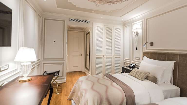 Die Zimmer sind elegant dekoriert und klimatisiert. Zur Ausstattung gehören ein Wasserkocher, ein Flachbild-Sat-TV und teilweise ein Sitzbereich. Jedes Zimmer verfügt über ein eigenes Bad mit kostenfreien Pflegeprodukten, Hausschuhen und einem Haartrockner. Zusätzliche Annehmlichkeiten umfassen einen Safe, eine Minibar sowie eine Tee-/Kaffeemaschine. Einige Zimmer bieten eine Terrasse zum Entspannen.