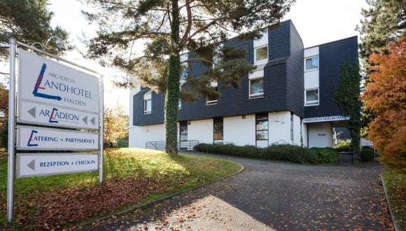 Das ARCADEON Landhotel Halden liegt ca. 200 m Fußweg vom Haupthaus, dem ARCADEON Haus der Wissenschaft und Weiterbildung, entfernt.