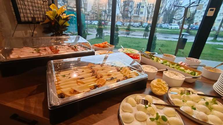 Im gastronomischen Bereich der Arche Residence Łódź erwartet die Gäste ein Restaurant und eine Bar. Zum Frühstücksbuffet werden verschiedene Speisen, darunter Saft und Käse, serviert. Das Restaurant öffnet seine Türen für Mittagessen, Abendessen, Brunch und Nachmittagstee.