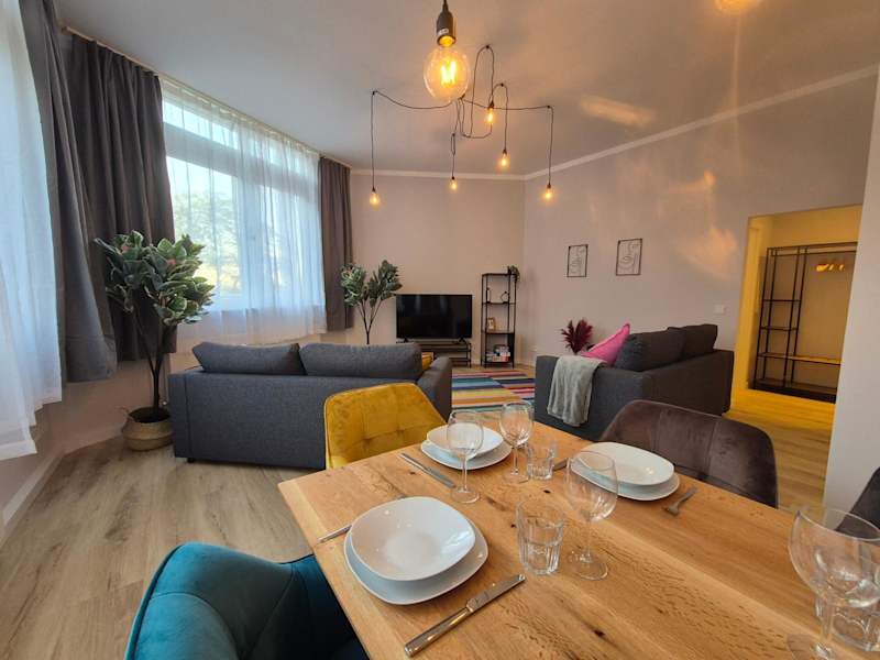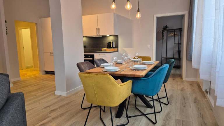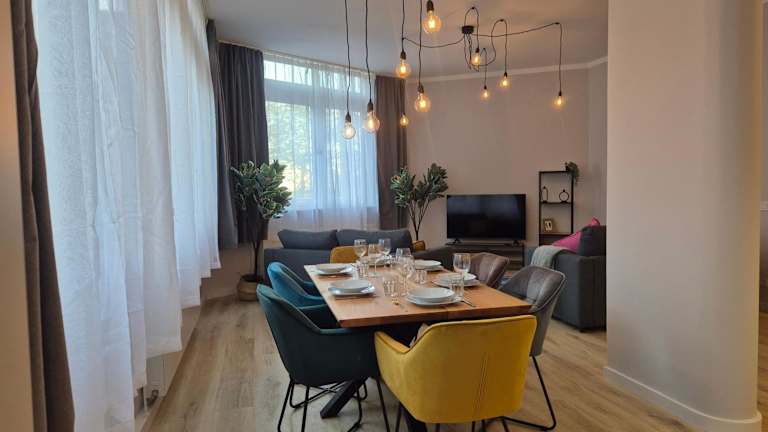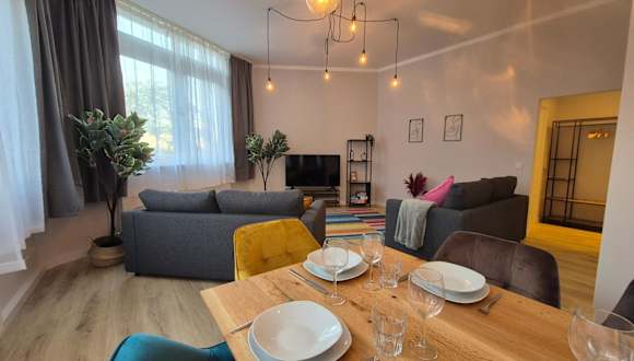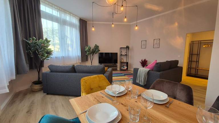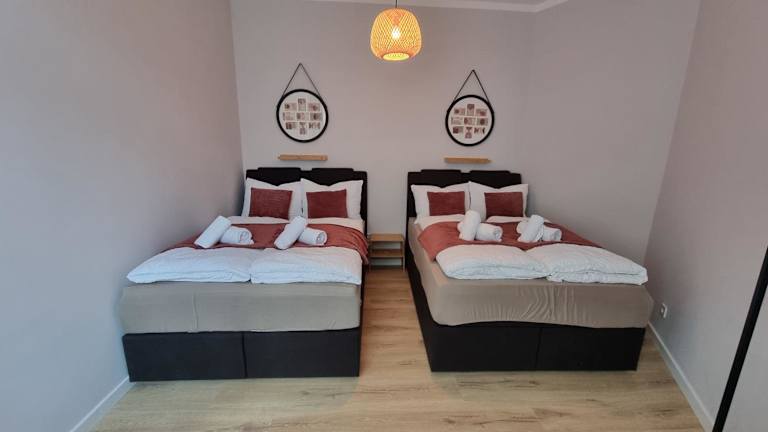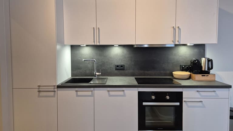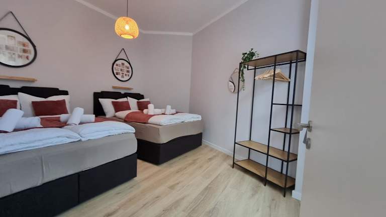 Die Ferienwohnung besteht aus einem Schlafzimmer, einem Wohnzimmer und einer voll ausgestatteten Küche, die über einen Kühlschrank und eine Kaffeemaschine verfügt. Das Badezimmer ist mit einer Dusche und kostenlosen Pflegeprodukten ausgestattet. Handtücher und Bettwäsche werden zur Verfügung gestellt.
