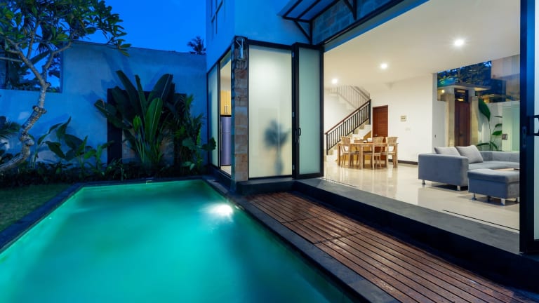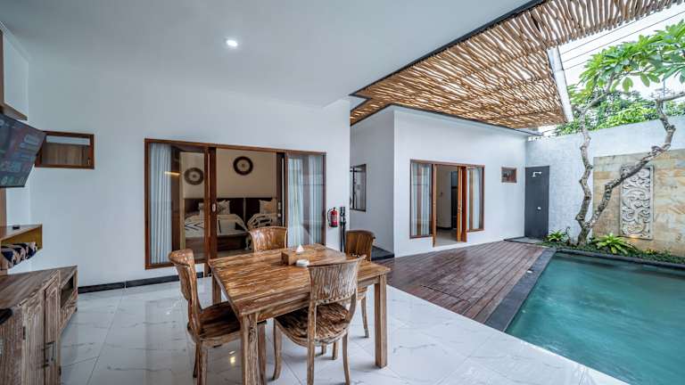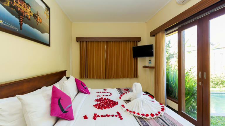 Die The Dewi Villa Canggu in Canggu ist der perfekte Ort für Paare, die einen entspannten und stilvollen Urlaub verbringen möchten. Mit einem Außenpool, Grillmöglichkeiten und komfortablen Zimmern bietet das Hotel alles, was Sie für einen erholsamen Aufenthalt benötigen. Genießen Sie die ruhige Lage und die Nähe zu den Stränden von Echo Beach und Batu Bolong. Das Restaurant des Hotels verwöhnt Sie auf Anfrage mit einem Lieferservice für Lebensmittel und Lunchpaketen.