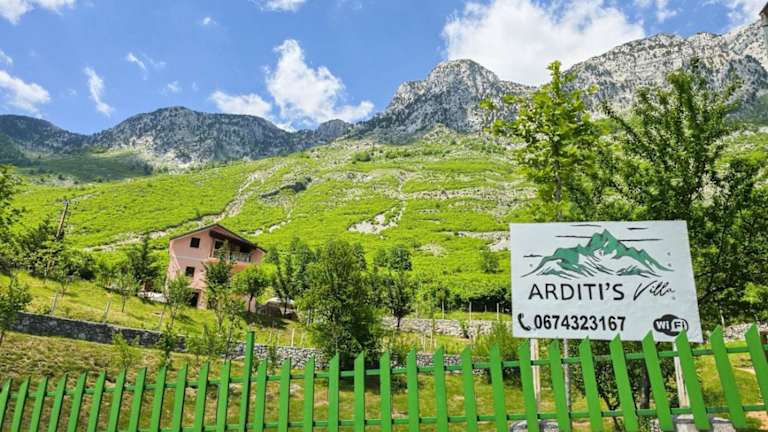 Die Unterkunft Arditi's Guesthouse befindet sich in Bogë, etwa 25 km vom Nationalpark Theth entfernt. Die Umgebung bietet eine malerische Kulisse mit Bergblick und vielen Möglichkeiten für Outdoor-Aktivitäten.
