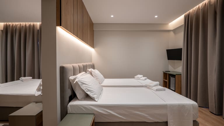 Die Zimmer verfügen über einen schönen Meerblick und sind mit einem Doppelbett, einem Safe, einer Minibar sowie einem Fernseher ausgestattet. WLAN ist in den Unterkünften verfügbar, und die Badezimmer sind mit einem Haartrockner ausgestattet. Es gibt Familien- sowie Nichtraucherzimmer.