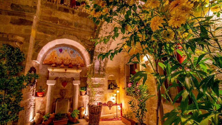 Das Aren Cave Hotel ist ein familiengeführtes Hotel mit einer besonderen Atmosphäre, das in historischen, 300 Jahre alten Höhlenräumen untergebracht ist. Die Steinwände und die traditionelle Einrichtung mit handgeknüpften Kilims und Keramikfliesen verleihen den Räumen eine heimelige Note. Das Hotel bietet Gästen viele Annehmlichkeiten wie eine 24-Stunden-Rezeption, Zimmerservice sowie zahlreiche Einrichtungen für Familien.