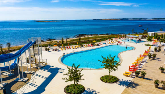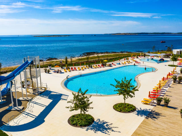 Die Ferienanlage befindet sich in Medulin, in direkter Strandlage und ist von einer grünen, ruhigen Umgebung umgeben. Das Ortszentrum von Medulin ist in 3 km erreichbar, während das Stadtzentrum von Pula 10 km entfernt liegt. Eine Bushaltestelle befindet sich direkt vor der Anlage. Der Flughafen von Pula ist in ca. 15 km erreichbar.