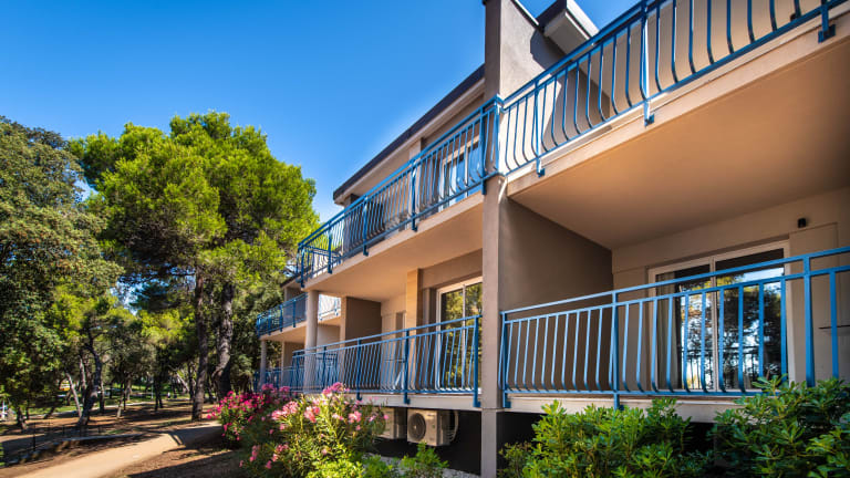 Die oberhalb des Meeres gelegene Anlage befindet sich auf der Halbinsel Punta Verudela in einem würzig duftenden Pinienwald, etwa 200 m vom felsigen Strand entfernt. Pula mit seinen Sehenswürdigkeiten ist in rund 5 km erreichbar.