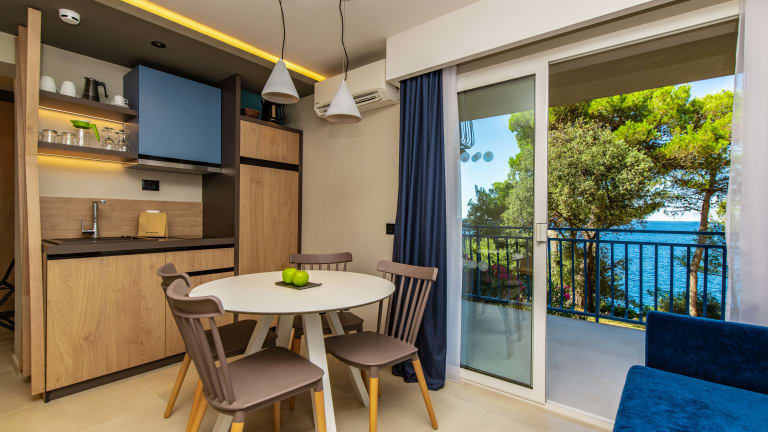 Die Appartements und Studios sind modern und bieten eine voll ausgestattete Küchenzeile, gemütliche Sitzbereiche und Balkone. Zu den Annehmlichkeiten gehören Flachbild-TV, Klimaanlage, WLAN und ein eigenes Bad mit Haartrockner. Die letzte Renovierung fand 2021 statt, wodurch die Zimmer einen frischen, ansprechenden Look erhalten haben.