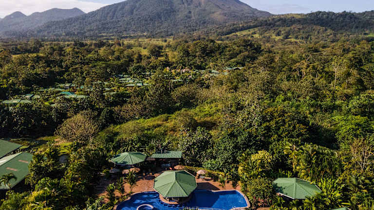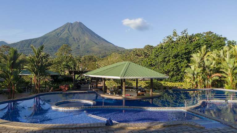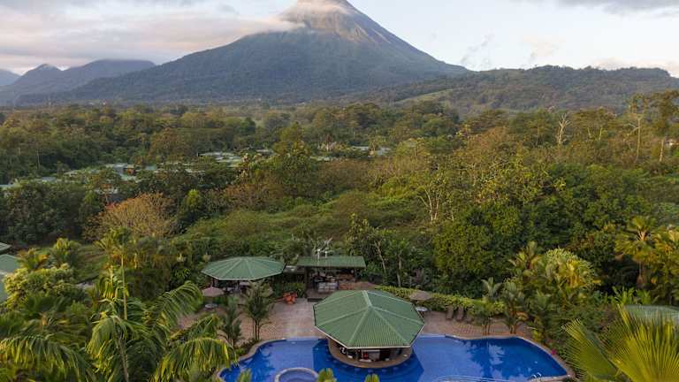 Das Hotel Arenal Manoa & Hot Springs Resort befindet sich in La Fortuna, etwa 7 km westlich vom Stadtzentrum entfernt. Die Lage bietet eine ruhige und naturnahe Umgebung, in der Nähe des Flusses La Palma und des aktiven Vulkans Arenal. Die Anreise von San José dauert ungefähr 2,5 Stunden.