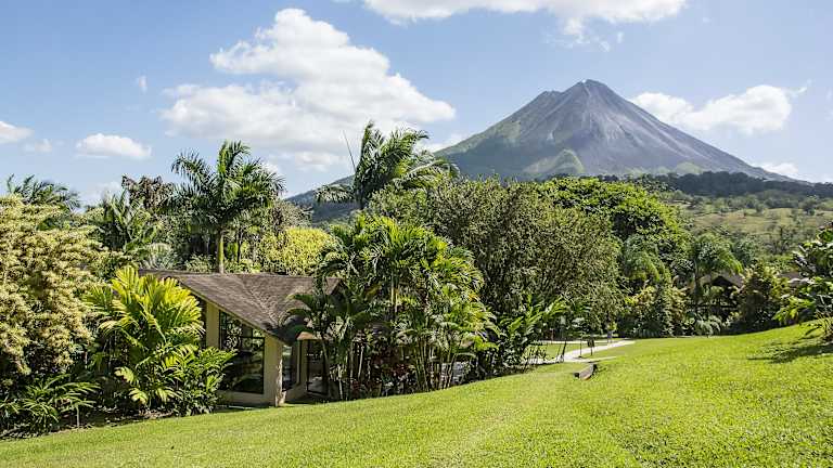 Das Hotel befindet sich im Ort La Fortuna und bietet eine majestätische Aussicht auf den Vulkan Arenal. Er liegt auf 1633 Metern über dem Meeresspiegel und ist einer der aktivsten Vulkane der Welt. Das Hotel liegt etwa 2,5 Autostunden von der Hauptstadt San José entfernt, umgeben von der natürlichen Schönheit des Regenwaldes und einer Vielzahl exotischer Tiere.