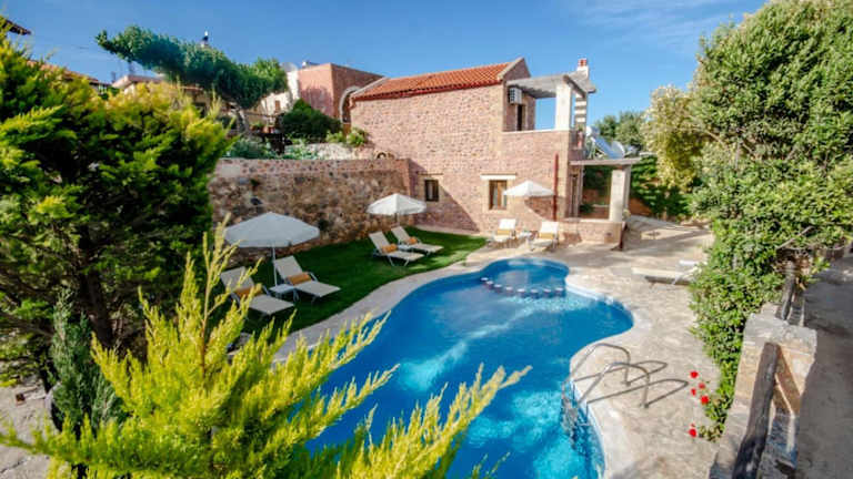 Aretaki Villas bietet Übernachtungsmöglichkeiten mit kostenlosem WLAN, Klimaanlage und Zugang zu einem Garten mit einem Aussenpool. Den Gästen steht eine Terrasse mit Bergblick zur Verfügung, zudem gibt es einen Whirlpool und Grillmöglichkeiten. Die Unterkunft ist Nichtraucher und die Mindestalter für den Check-in beträgt 18 Jahre. Haustiere sind gestattet.