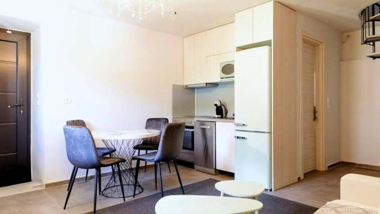 Aretha Mansion - Chora Samothrace bietet klimatisierte Übernachtungsmöglichkeiten in einem einladenden Ferienhaus mit einer Terrasse. Die Unterkunft besteht aus einem Schlafzimmer, einem Wohnzimmer und einer gut ausgestatteten Küche, die mit Kühlschrank und Geschirrspüler ausgestattet ist. Die Veranda/Parkett lädt zur Entspannung ein.