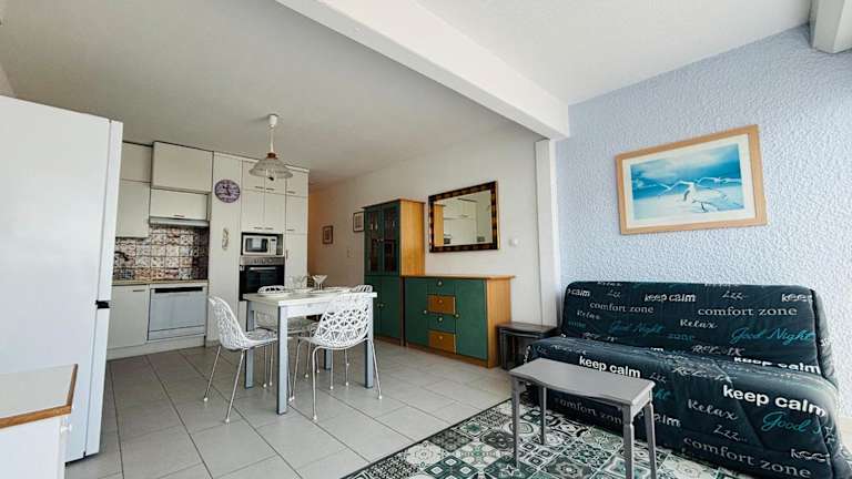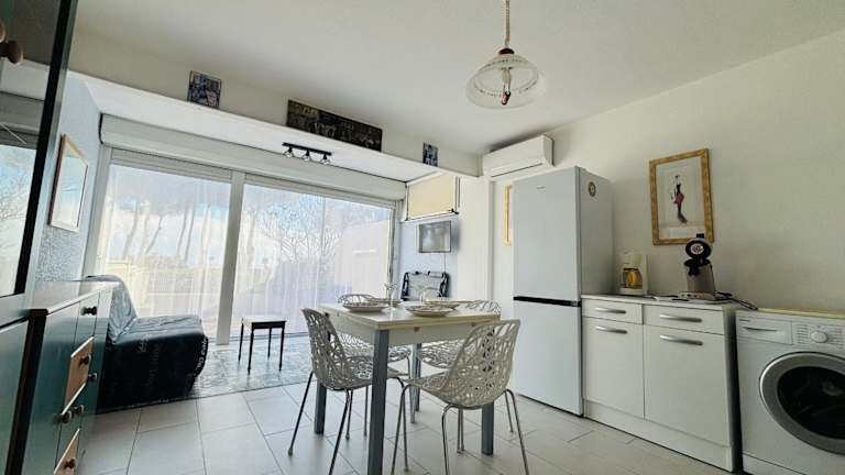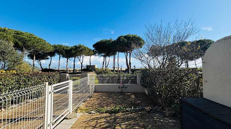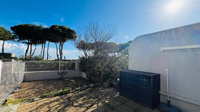 Das ARGELES SUR MER - Appartement T2 en rez de jardin - Vue mer bietet Meerblick und verfügt über eine Terrasse. Es handelt sich um eine klimatisierte Ferienwohnung mit Übernachtungsmöglichkeiten in einem Garten. Ein kostenloser Privatparkplatz ist ebenfalls vorhanden.