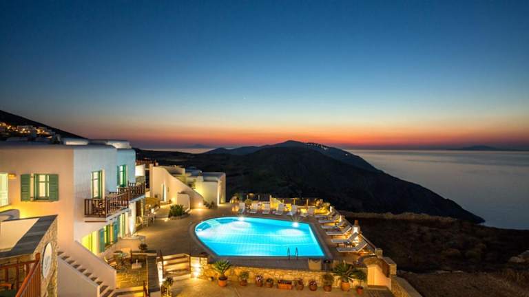 Das Aria Boutique Hotel befindet sich im malerischen Folegandros, 3,5 km vom Hafen Karavostastis und 5 km vom Strand von Agkali entfernt. Ein Hubschrauberlandeplatz ist 1 km entfernt.