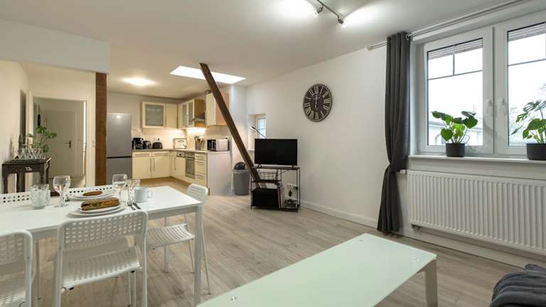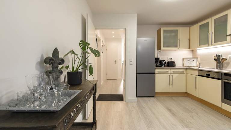 Die Apartments bieten komfortable Unterkünfte mit Parkettböden und einer voll ausgestatteten Küche, die einen Kühlschrank, einen Geschirrspüler, einen Backofen, eine Mikrowelle, eine Kaffeemaschine und einen Wasserkocher umfasst. Ein Essbereich und ein eigenes Badezimmer mit Dusche sind ebenfalls vorhanden. Zur weiteren Ausstattung gehören ein Flachbild-Sat-TV und kostenfreies WLAN.