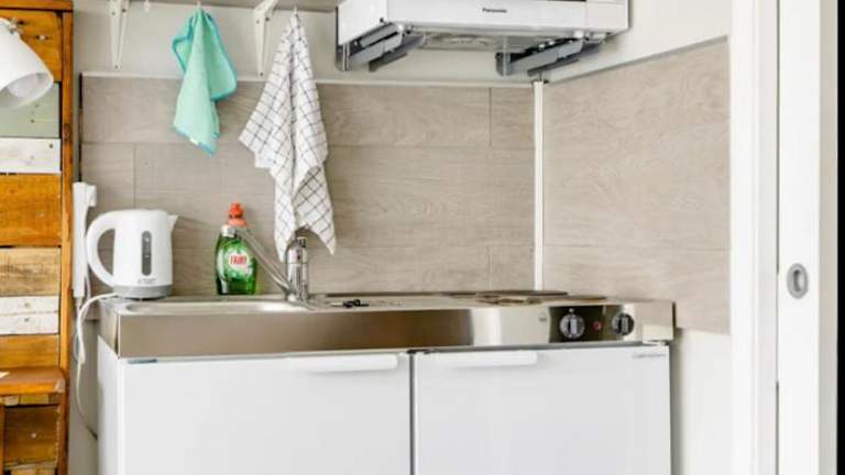 Die Unterkunft verfügt über eine Küchenzeile, die mit einem Kühlschrank, einem Ofen sowie einer Mikrowelle ausgestattet ist. Somit haben die Gäste die Möglichkeit, eigene Mahlzeiten zuzubereiten.