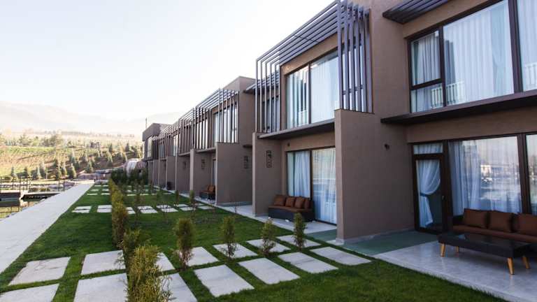 Die Zimmer im Arman Dala Resort sind mit einem eigenen Badezimmer, Klimaanlage, einem Flachbild-TV und einem Kühlschrank ausgestattet. Sie verfügen über einen Schreibtisch, Bettwäsche, Handtücher und bieten eine Terrasse mit einem Blick auf die Berge, was zur Bequemlichkeit und dem Wohlbefinden der Gäste beiträgt.