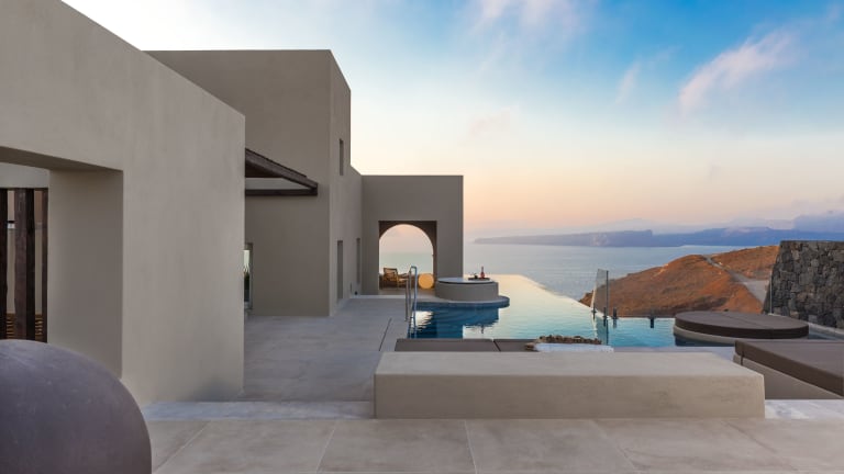 Die Arota Exclusive Villas befinden sich in Akrotiri und sind ideal gelegen für Erwachsene, die Wert auf Privatsphäre legen. In unmittelbarer Nähe finden sich der Strand Kokkinopetra, der nur 800 m entfernt ist, sowie der berühmte White Beach in 1,9 km Entfernung. Weitere nahegelegene Sehenswürdigkeiten sind die archäologische Stätte Akrotiri und der Flughafen Santorin, der etwa 14 km entfernt ist.