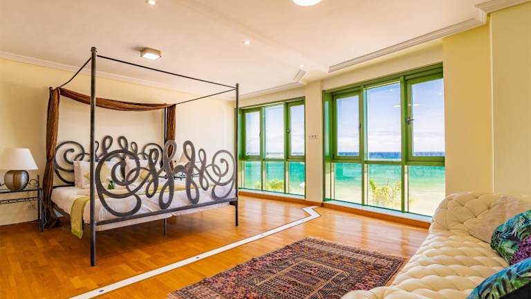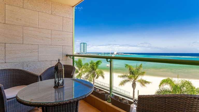 Arrecife Sands- Seafront Apartment bietet klimatisierte Unterkünfte mit Balkon und kostenfreiem WLAN. Es umfasst 3 Schlafzimmer, 2 Badezimmer sowie eine voll ausgestattete Küche. Zur Ausstattung gehören außerdem ein Essbereich, ein Flachbild-TV und eine Terrasse mit Stadtblick. Ein kostenloser Parkplatz sowie Optionen für Fahrradverleih und Autovermietung sind ebenfalls verfügbar.