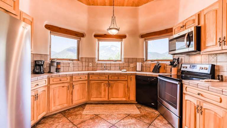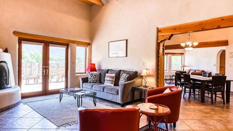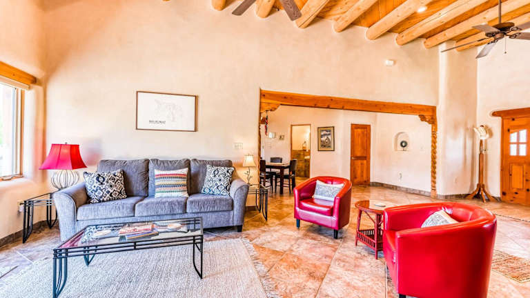 Arroyo Seco's Getaway bietet Übernachtungsmöglichkeiten in einem Ferienhaus mit 3 Schlafzimmern und 3 Badezimmern. Die Unterkunft beinhaltet eine voll ausgestattete Küche und eine Veranda/Pati mit Bergblick. Es besteht die Möglichkeit, einen Whirlpool zu nutzen.