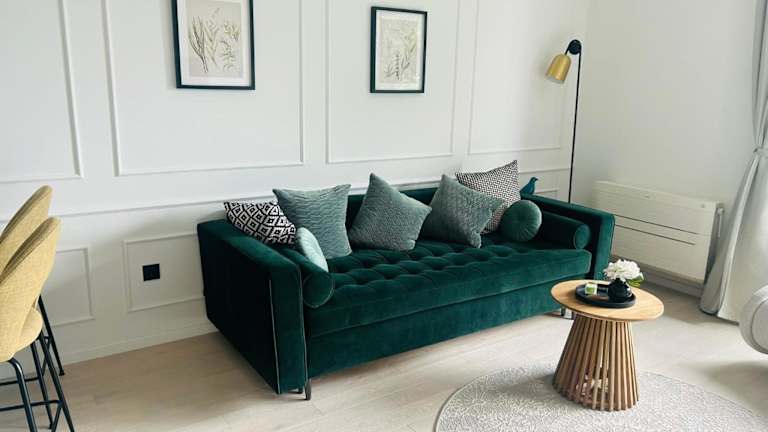 Die Ferienwohnung besteht aus einem Schlafzimmer, einem Wohnzimmer und einer voll ausgestatteten Küche, die unter anderem über einen Kühlschrank und eine Kaffeemaschine verfügt. Das Badezimmer ist mit einer Dusche und einem Haartrockner ausgestattet. Handtücher und Bettwäsche werden zur Verfügung gestellt.