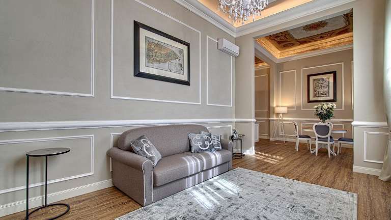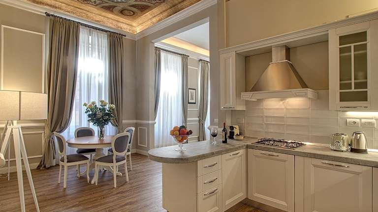 Die Art Apartment Luxury Family suite besticht durch ein historisches Ambiente in einem Gebäude aus dem Jahr 1600. Diese Ferienwohnung bietet eine stilvolle und geräumige Unterkunft für Familien.
