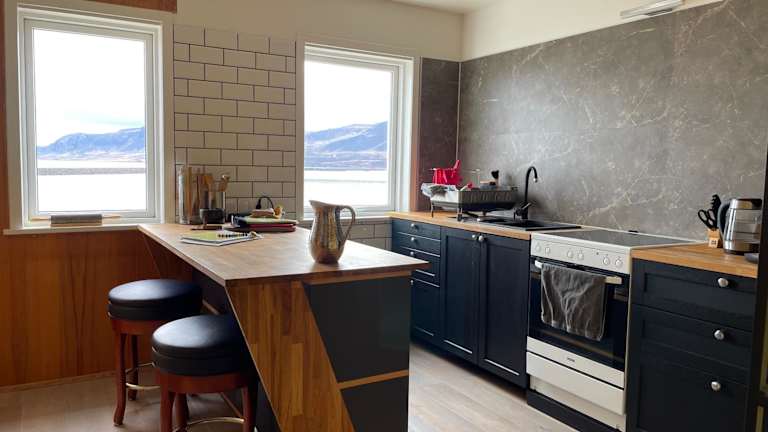 Die Unterkunft befindet sich in Borgarnes und bietet einen eigenen Strandbereich, was ideal für entspannte Momente am Wasser ist. Der Inlandsflughafen Reykjavík liegt etwa 75 km entfernt und ermöglicht eine einfache Anreise.