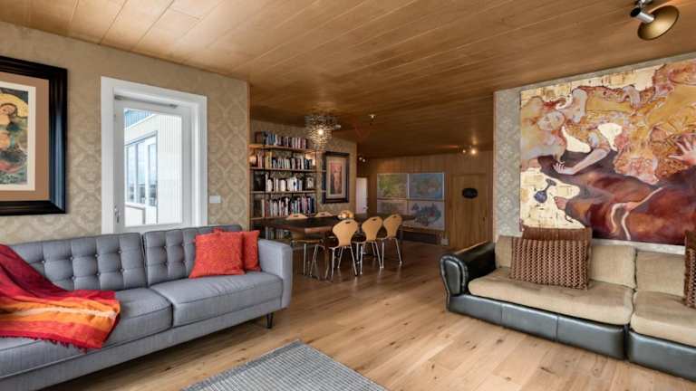 Die Unterkunft Art & Nature Retreat in Iceland - The Crib Rocks bietet ein ruhiges Ambiente inmitten der Natur mit einem schönen Garten und einem eigenen Strandbereich.