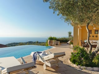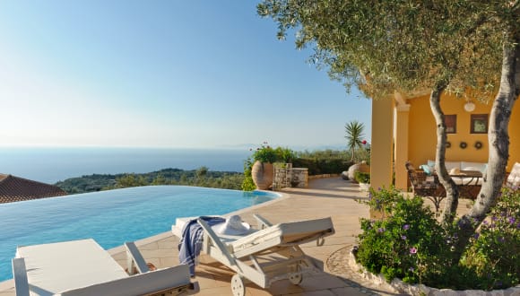 ArtBlue Villas in Lefkada. The contemporary architecture, elegant design, sophisticated decor and modern comforts of the art blue villas offer facilities of the highest quality A panoramic location, set on the side of a verdant hill on Lefkada’s northwestern coast, you can gaze into the Ionian Sea, which appears to rise up and embrace the sun during the magical sunset. An idyllic location which also provides all the comforts you require for a great stay,Panoramic sea views and sunset ARTBLUE VILLAS is located to the west side of the Leflada island The nearly village of Tsoukalades (700m from the villa) is a few minutes drive. By foot it only takes 10 minutes. Lefkada town is a 10minutes drive north or AG. Nikitas village 10 minutes drive south.