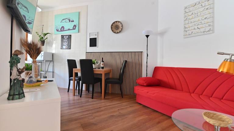 Die Ferienwohnung besteht aus einem separaten Schlafzimmer, einem Badezimmer mit kostenlosen Pflegeprodukten und einem Haartrockner sowie einem gemütlichen Wohnzimmer. Handtücher und Bettwäsche werden zur Verfügung gestellt.