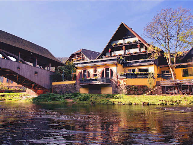 Das Hotel Das Waldhaus in Forbach ist ein charmantes, familiengeführtes Hotel im Herzen des Schwarzwaldes. Es bietet eine ruhige Lage direkt am Flussufer und ist nur 13 km von Baden-Baden entfernt. Genießen Sie den Komfort der frisch renovierten Zimmer, kostenfreies WLAN und einen Flachbild-TV. Entspannen Sie auf der Terrasse mit Flussblick oder im Garten, wo Sie ein köstliches Frühstücksbuffet, Getränke und Kuchen genießen können. Das Hotel ist der ideale Ausgangspunkt für Wanderungen, Motorrad- und Radtouren in der Umgebung.